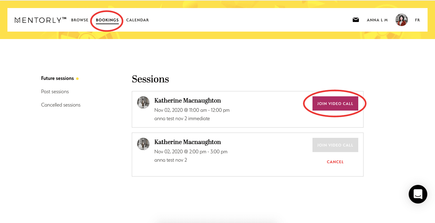 You can view session history and join upcoming sessions on your Bookings page.